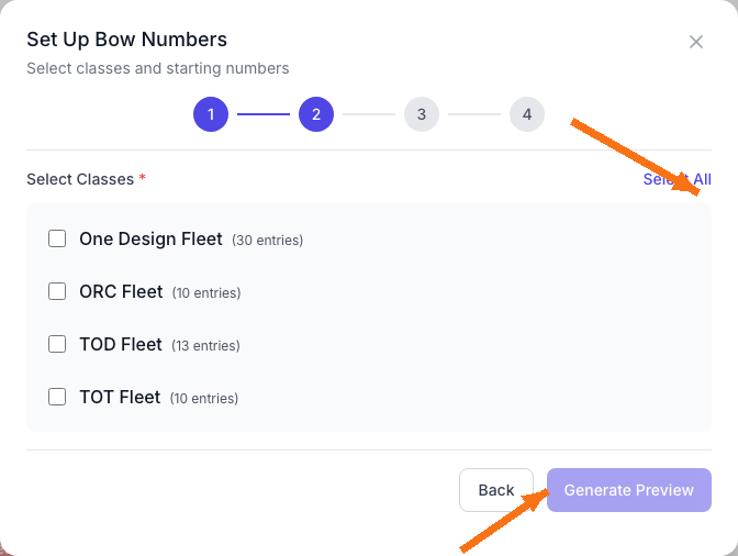 - Select the classes you want to assign bow numbers to (or click Select All).