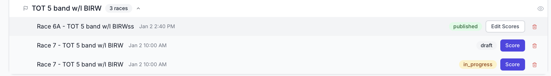 Best Practice: Don’t delete published races unless absolutely necessary. If a race was abandoned due to conditions, it’s better to mark it as abandoned rather than delete it.